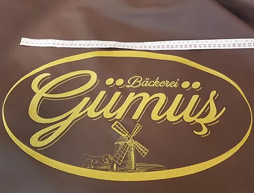Sitzbank mit Kundenlogo auf Leder Hochwertig bestickt