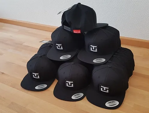 Hier Basecaps mit 3D Stickerei und Label. Wir sind Exklusiver Hersteller aller Merchandise Produkte der UrbanTribe Sportsclubs Berlin