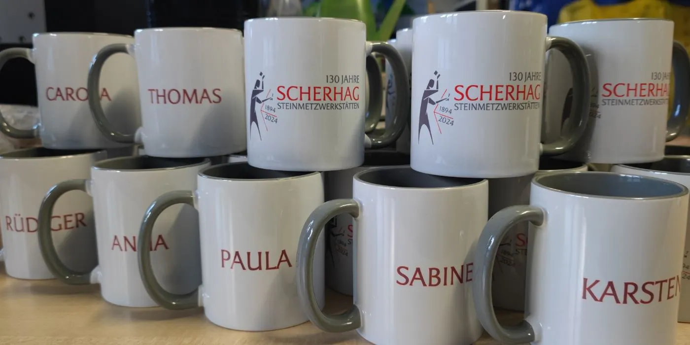Logo-Service: Bei Avanta bedrucken wir mit Transferdruck Arbeitskleidung, Tassen und Baumwolltaschen und vieles mehr. Wählen Sie Produkte im Online-Shop und senden Sie eine Anfrage – alles aus einer Hand.
